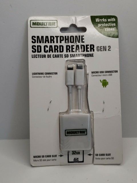 Moultrie smart phone sd card reader gen 2. Simply load the free phone app and then connect the card reader to your device. It turns your otg capable android device or iphone into a card viewer through the use of the necessary app and its card reader. A trail camera sd card reader is also more compatible with trail camera video and picture footage, so there should be far less problems with viewing images. I purchased the moultrie card reader to make it more convenient to read the sd cards out of my trail camera.